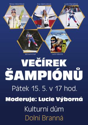 Beseda se sportovci s názvem "Večírek šampiónů" - KD Dolní Branná 15.5.2026 od 17 hodin - moderuje Lucie Výborná.