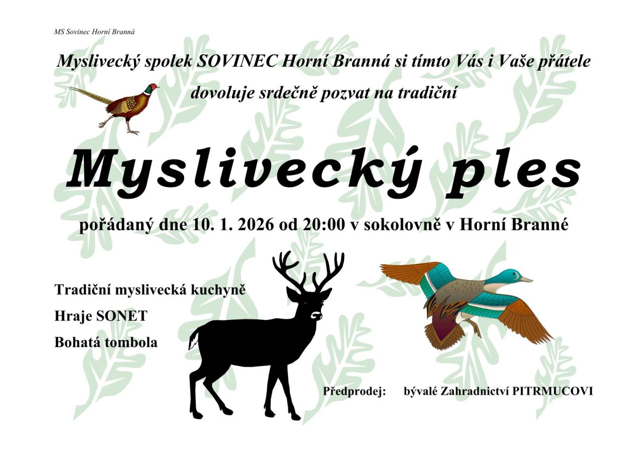 Myslivecký spolek SOVINEC Vás srdečně zve na tradiční myslivecký ples.